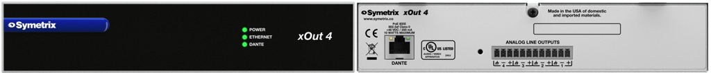 - Erhöht die Zahl der analogen Systemausgänge (D/A) in Dante®-fähige Symetrix DSP-Audiomatrizen